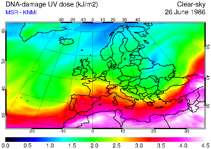DNA-damage UV dose of 26 June 1986