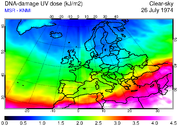 DNA-damage UV dose of 26 July 1974