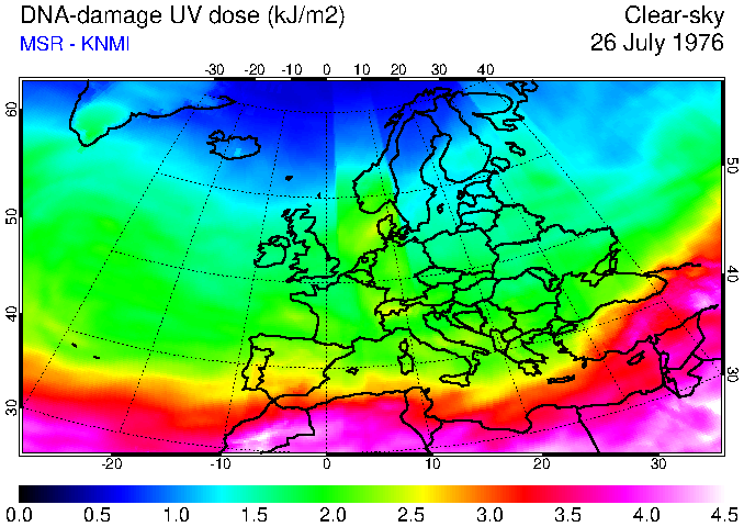 DNA-damage UV dose of 26 July 1976