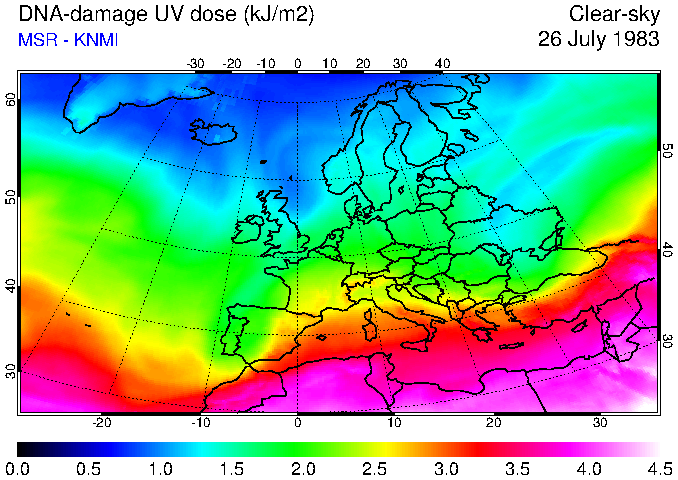 DNA-damage UV dose of 26 July 1983