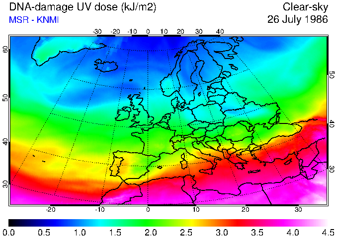 DNA-damage UV dose of 26 July 1986