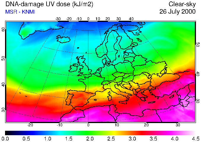 DNA-damage UV dose of 26 July 2000