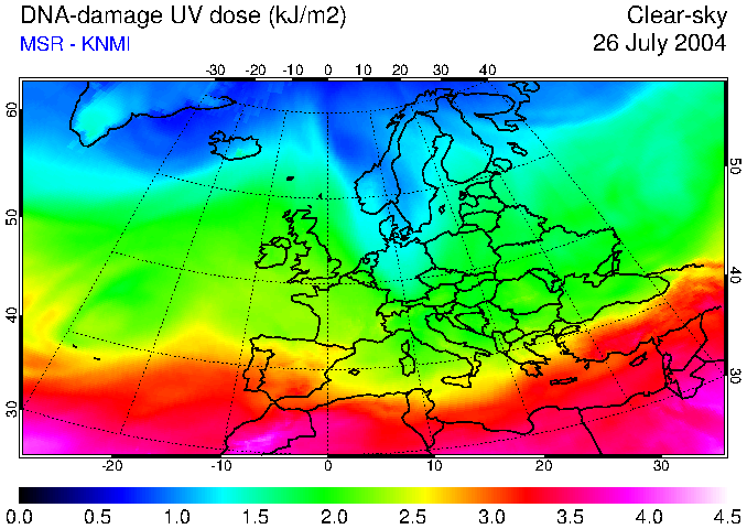 DNA-damage UV dose of 26 July 2004