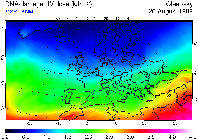 DNA-damage UV dose of 26 August 1989