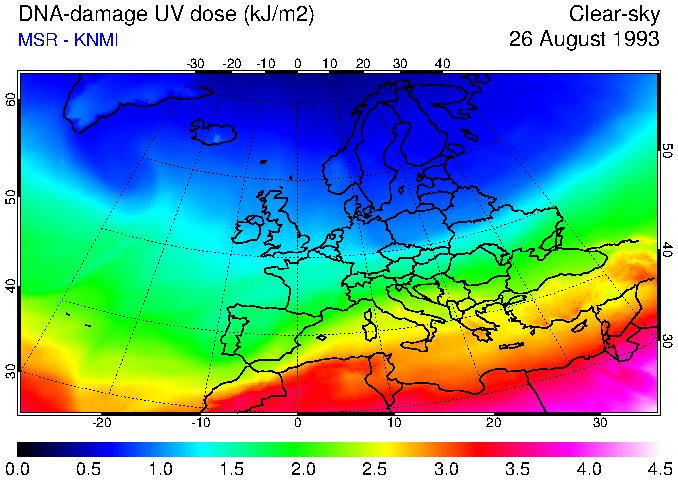 DNA-damage UV dose of 26 August 1993
