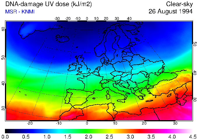 DNA-damage UV dose of 26 August 1994