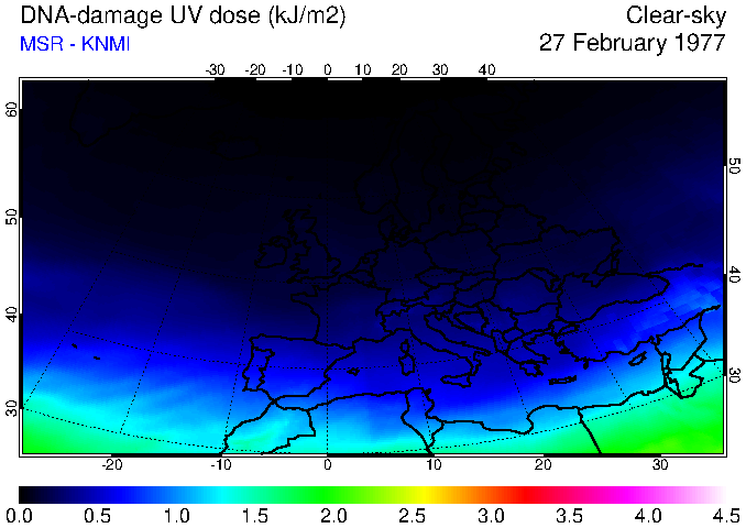 DNA-damage UV dose of 27 February 1977