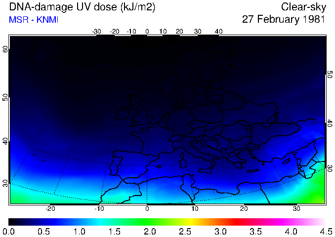 DNA-damage UV dose of 27 February 1981
