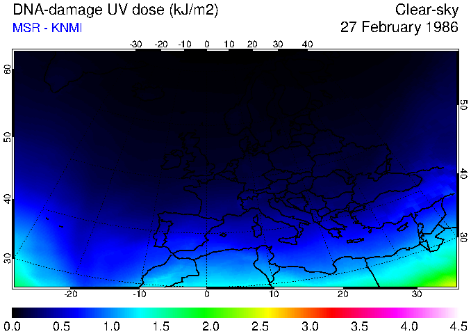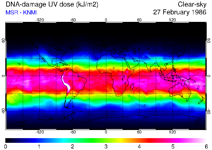 DNA-damage UV dose of 27 February 1986