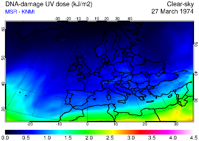 DNA-damage UV dose of 27 March 1974