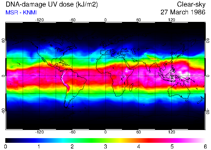 DNA-damage UV dose of 27 March 1986