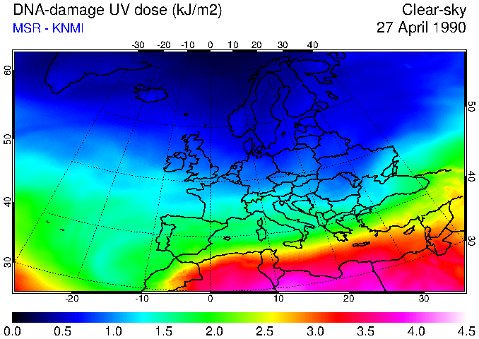DNA-damage UV dose of 27 April 1990
