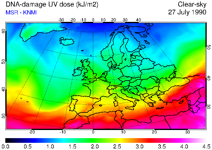 DNA-damage UV dose of 27 July 1990