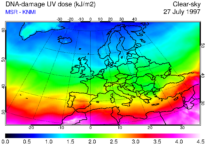DNA-damage UV dose of 27 July 1997