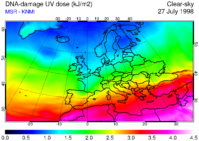 DNA-damage UV dose of 27 July 1998
