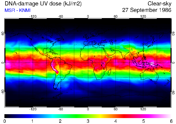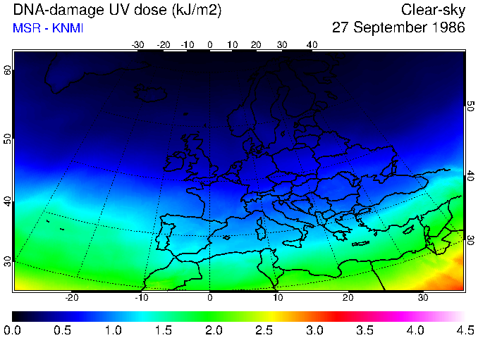 DNA-damage UV dose of 27 September 1986
