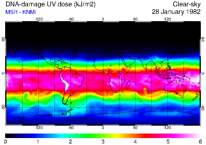 DNA-damage UV dose of 28 January 1982