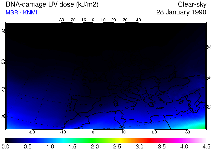 DNA-damage UV dose of 28 January 1990