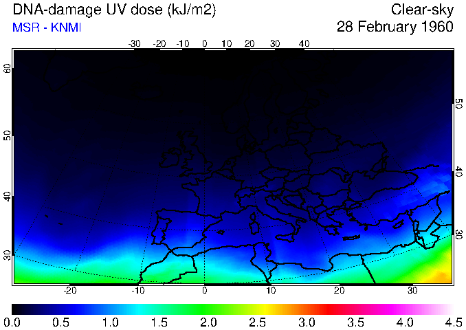 DNA-damage UV dose of 28 February 1960
