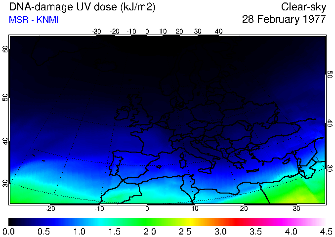 DNA-damage UV dose of 28 February 1977