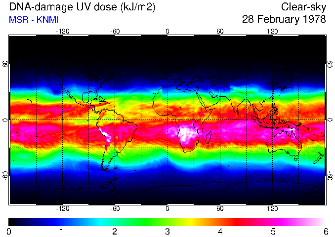 DNA-damage UV dose of 28 February 1978