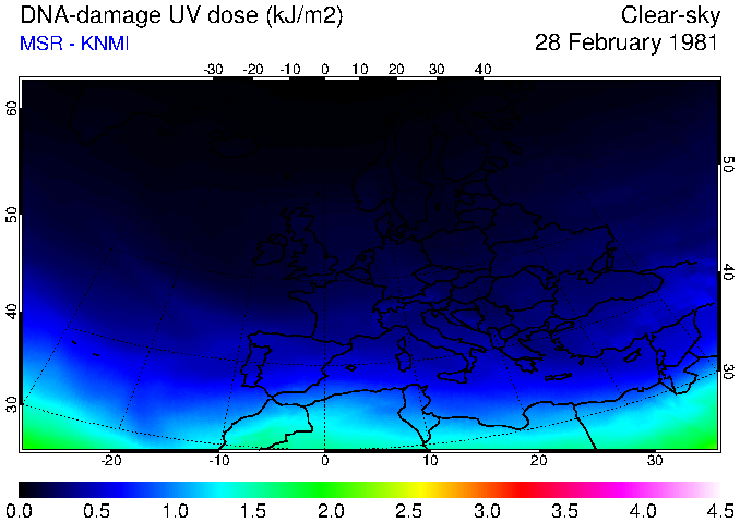 DNA-damage UV dose of 28 February 1981