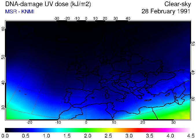 DNA-damage UV dose of 28 February 1991