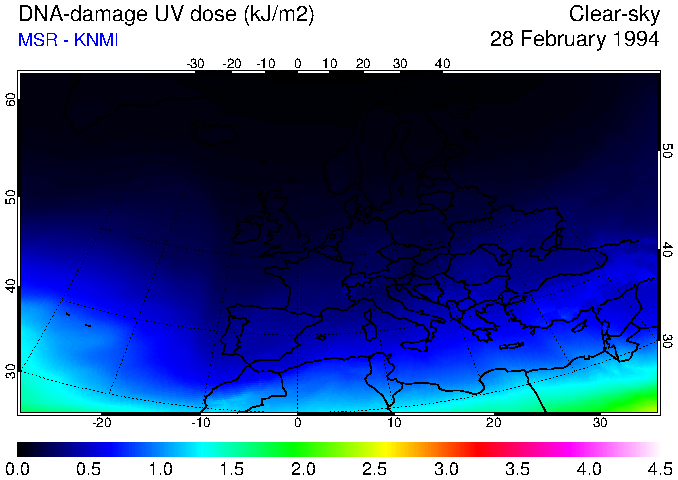 DNA-damage UV dose of 28 February 1994