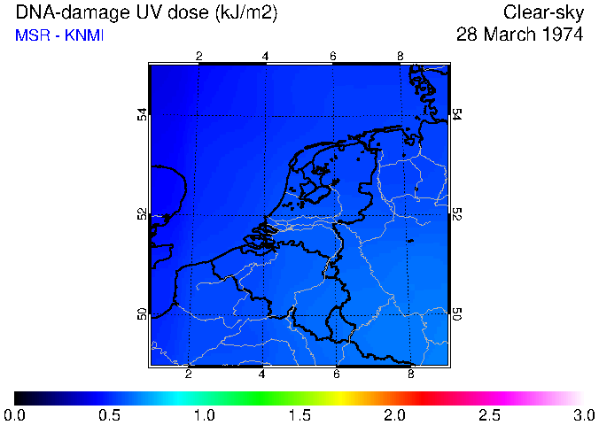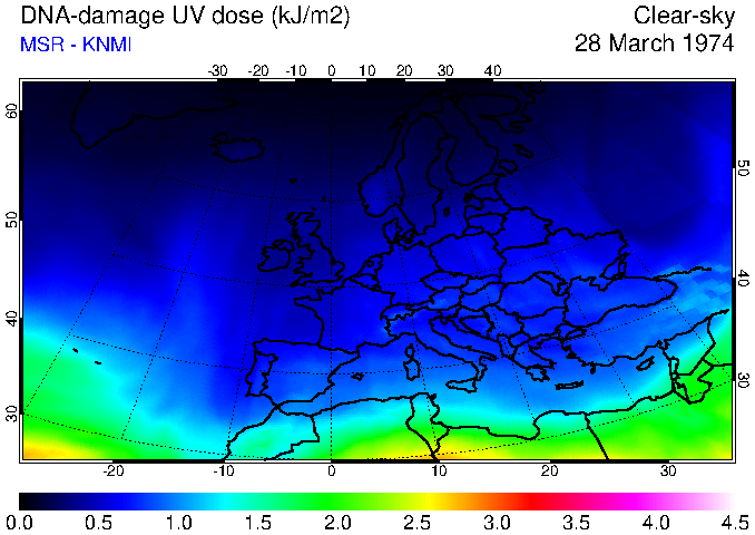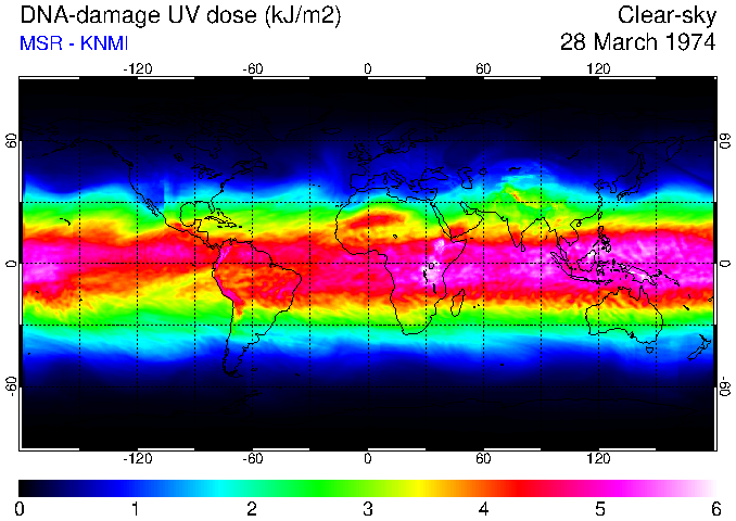 DNA-damage UV dose of 28 March 1974