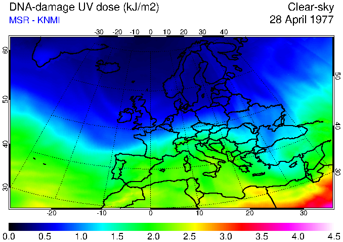 DNA-damage UV dose of 28 April 1977
