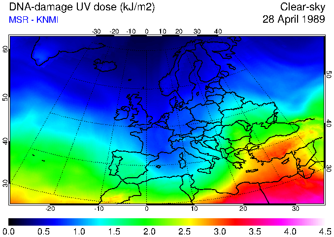 DNA-damage UV dose of 28 April 1989