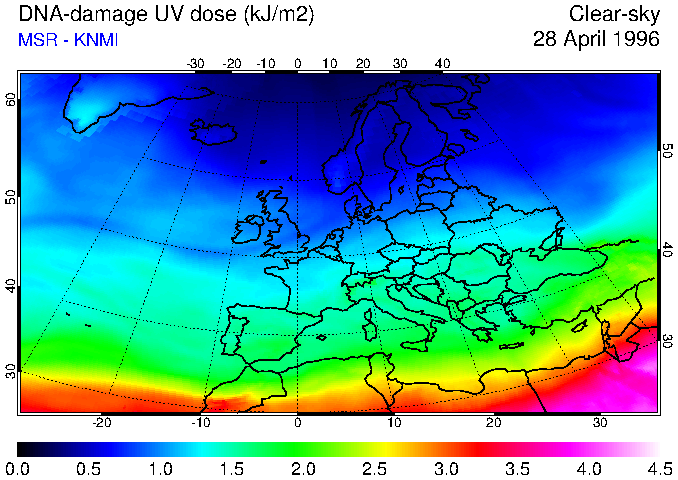 DNA-damage UV dose of 28 April 1996