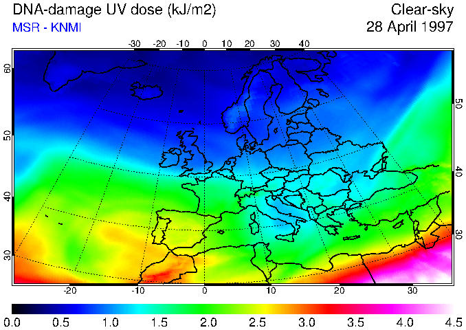 DNA-damage UV dose of 28 April 1997