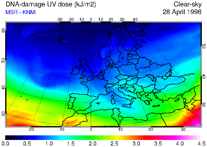DNA-damage UV dose of 28 April 1998