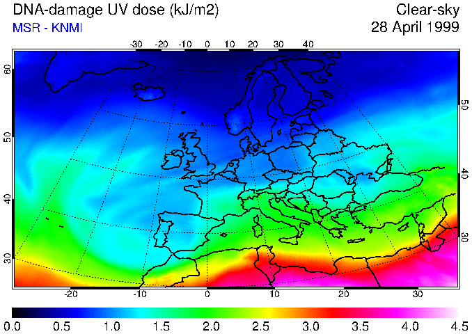 DNA-damage UV dose of 28 April 1999