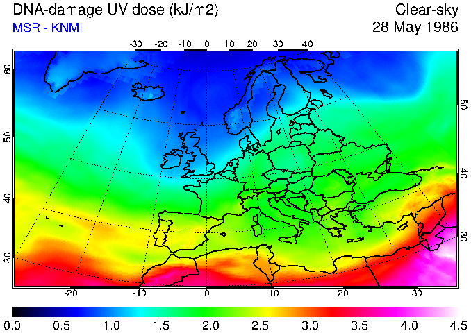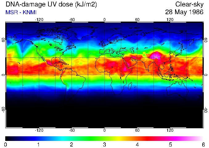 DNA-damage UV dose of 28 May 1986
