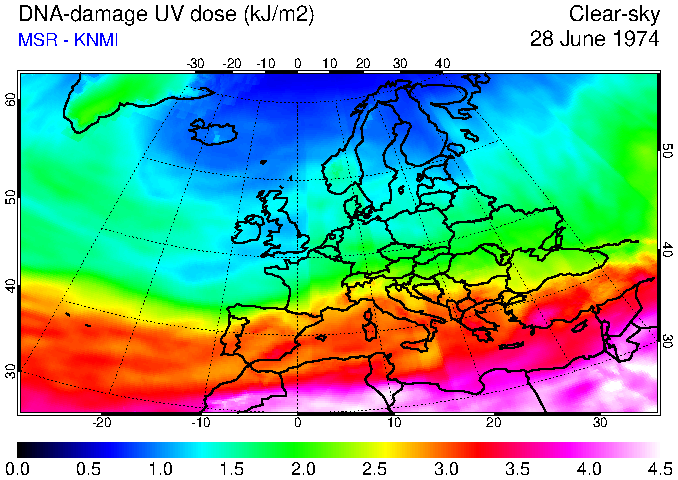 DNA-damage UV dose of 28 June 1974