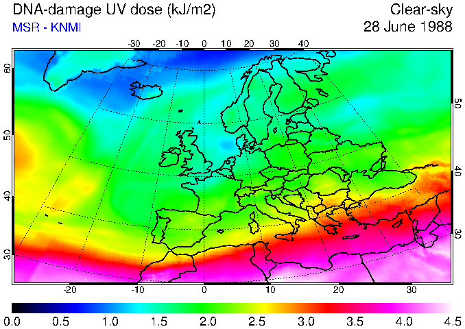 DNA-damage UV dose of 28 June 1988