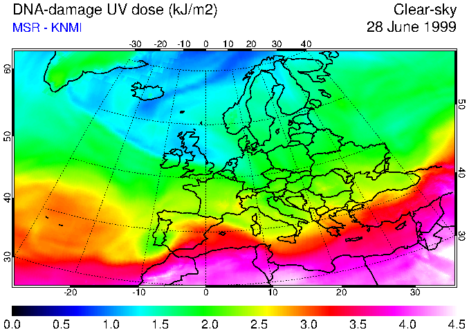 DNA-damage UV dose of 28 June 1999