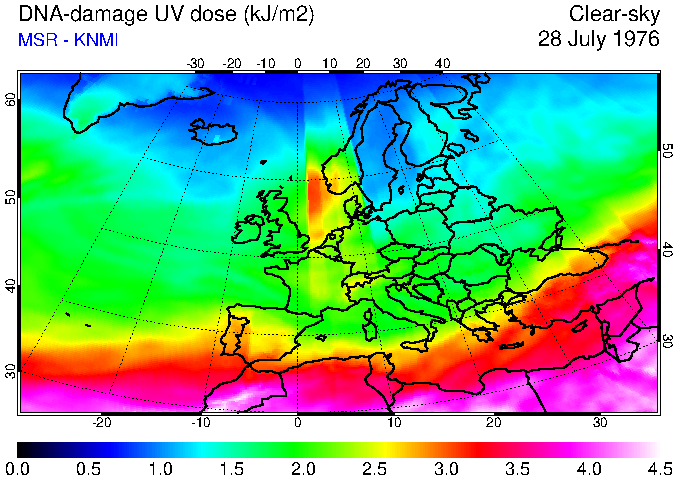 DNA-damage UV dose of 28 July 1976