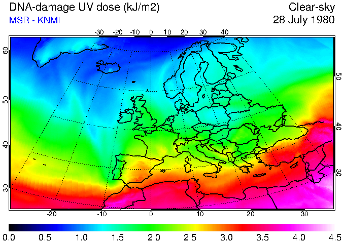 DNA-damage UV dose of 28 July 1980
