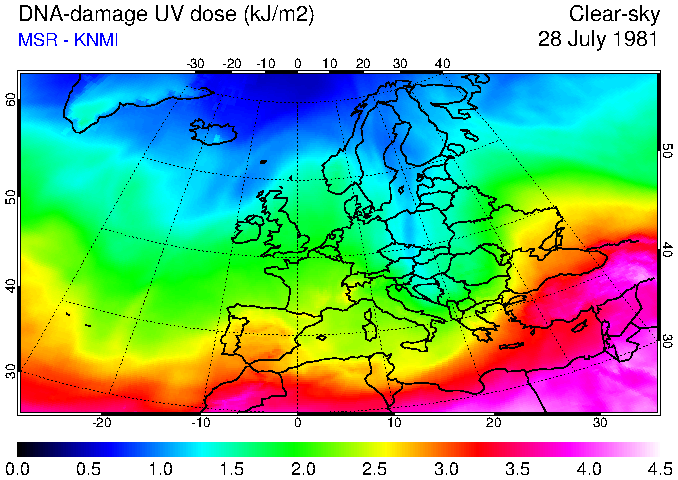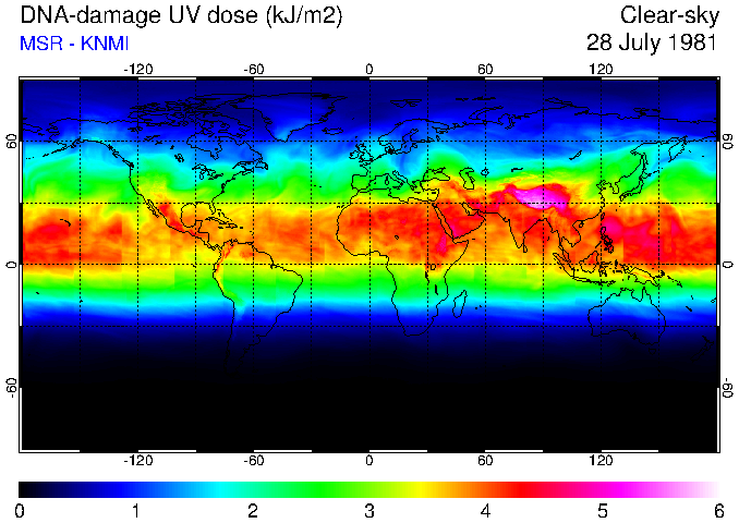 DNA-damage UV dose of 28 July 1981