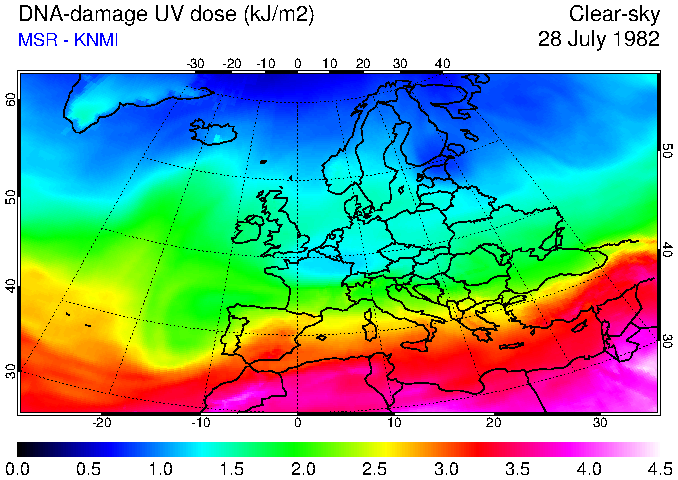 DNA-damage UV dose of 28 July 1982