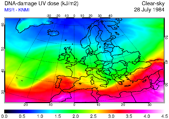 DNA-damage UV dose of 28 July 1984