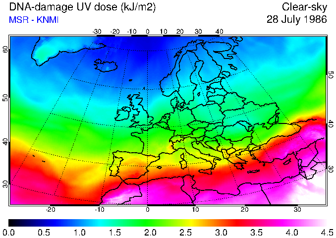 DNA-damage UV dose of 28 July 1986