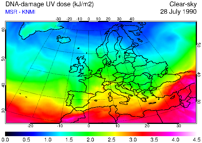 DNA-damage UV dose of 28 July 1990
