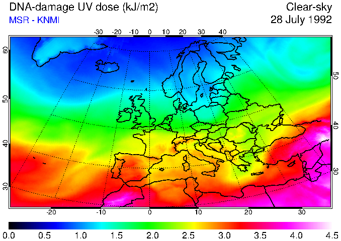 DNA-damage UV dose of 28 July 1992