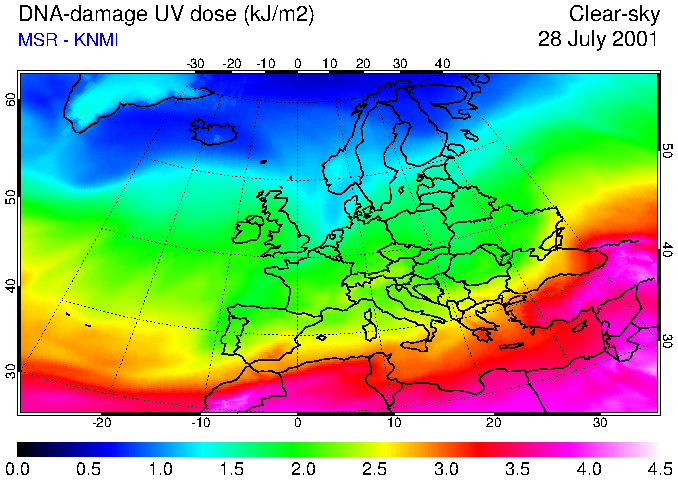 DNA-damage UV dose of 28 July 2001