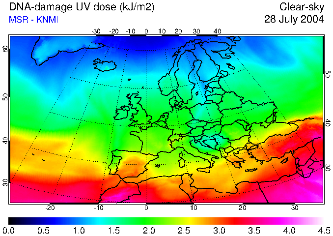 DNA-damage UV dose of 28 July 2004