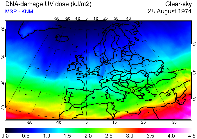DNA-damage UV dose of 28 August 1974